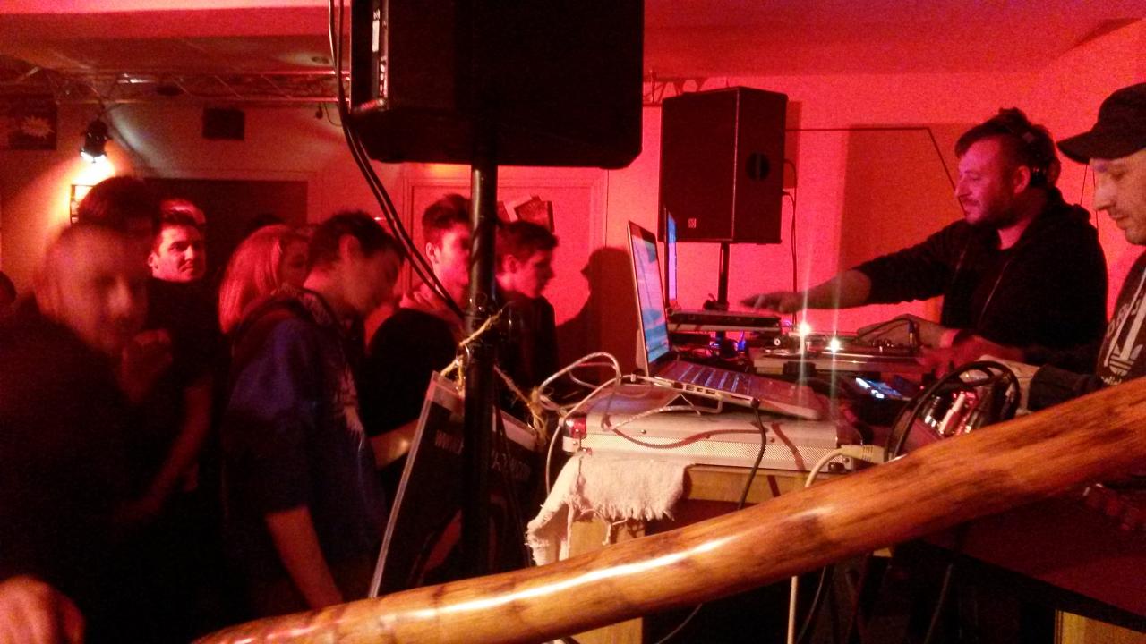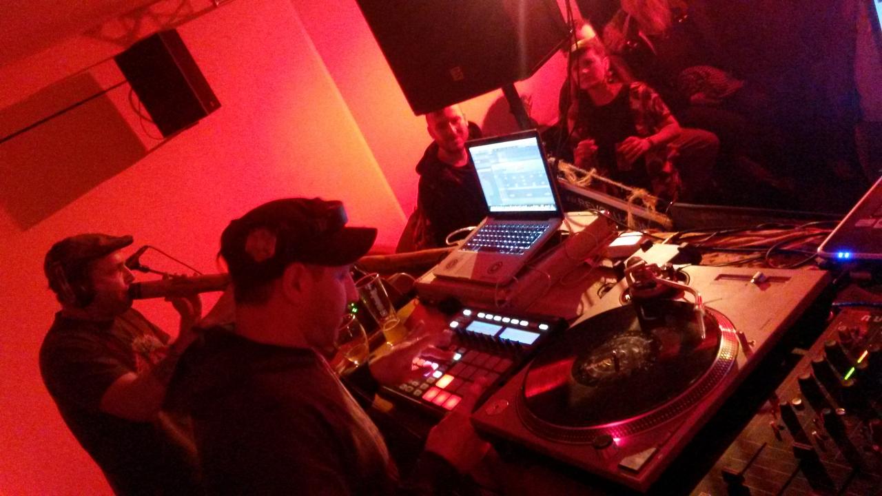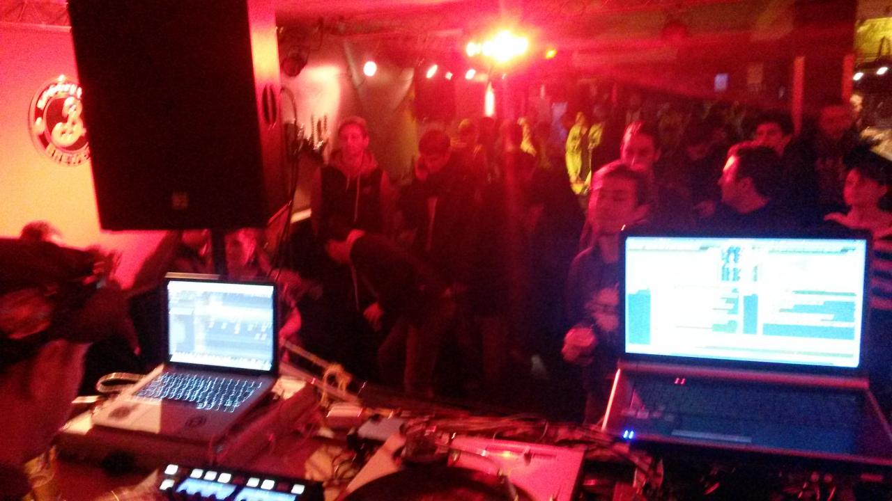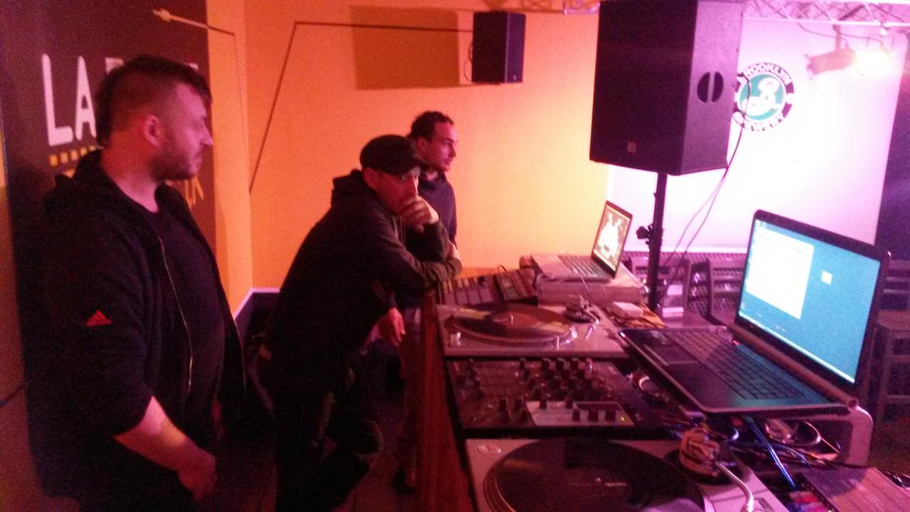Dès 18h on installe les 2 technics et l'ecler nuo.4 avec serato sl3 et le PC. Puis maschine et Le Mac pour le live de Lolo... Ensuite Camille arrive pour installer le clavier Korg R3, le didgeridoo, le pédalage Boss RC 300 et le Kaoss pad KP3... Quelques réglages, quelques tests puis pause Chouffe Pression & kébab en attendant 21h!